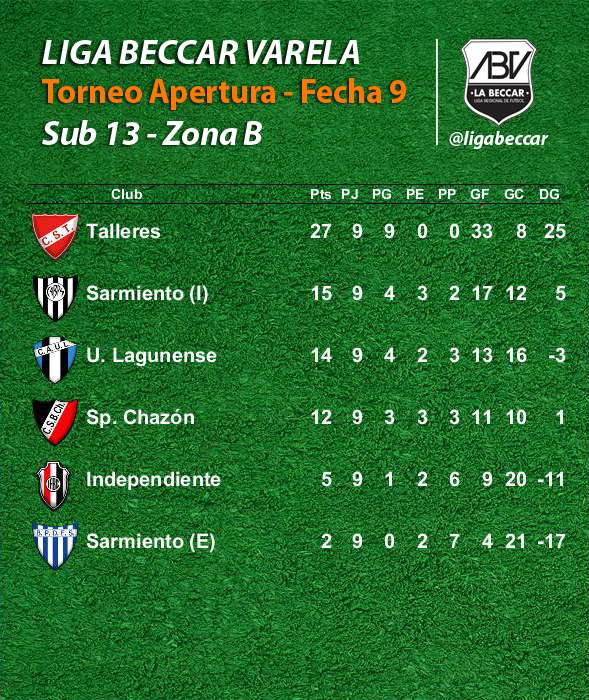 Se jugó en la tarde del sábado 14 de mayo la 9na fecha de los torneos Apertura Sub 13 “Flavio Ezequiel Rubiolo”, Sub 15 “Fernando Andrés Zappia” y Sub 17 “Agustín Bourges”, de la Liga Beccar Varela de fútbol.