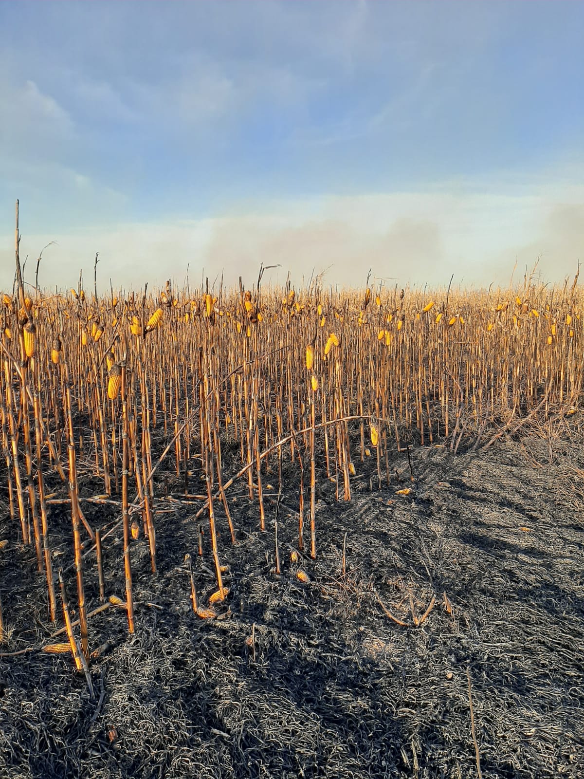En el lugar, dotaciones de Bomberos debieron combatir un incendio en plantas de maíz. Fueron12 las hectáreas afectadas. Se procedió a la extinción del siniestro y a hacer guardia de cenizas por un tiempo prudencial.
