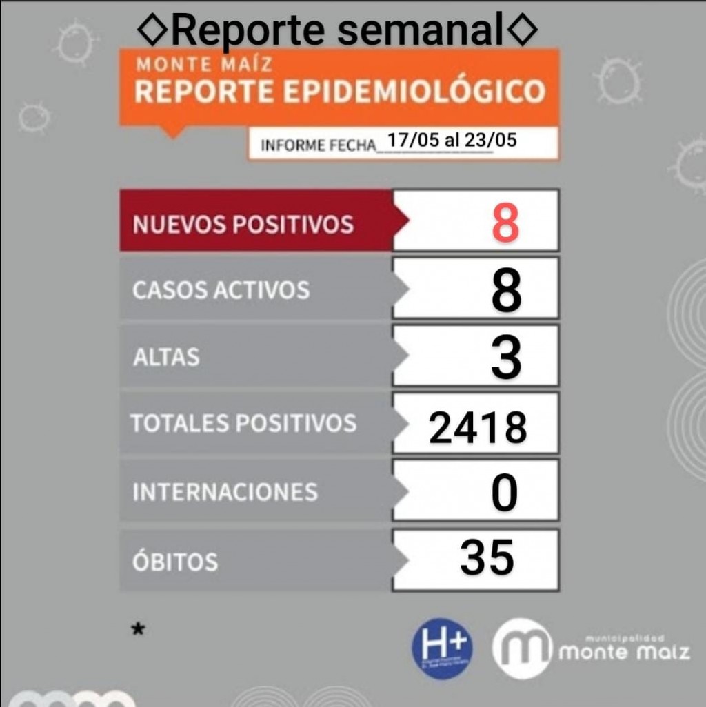 8 CASOS NUEVOS DE COVID-19 EN MONTE MAÍZ
