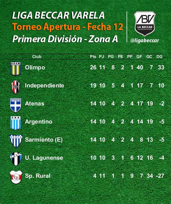 Olimpo conservó la ventaja al tope de las posiciones en la Zona A, con su victoria 4 a 1 sobre Sportivo Rural. El escolta Independiente derrotó 1 a 0 a Sarmiento (E). Argentino se impuso 2 a 0 frente a Unión Lagunense.