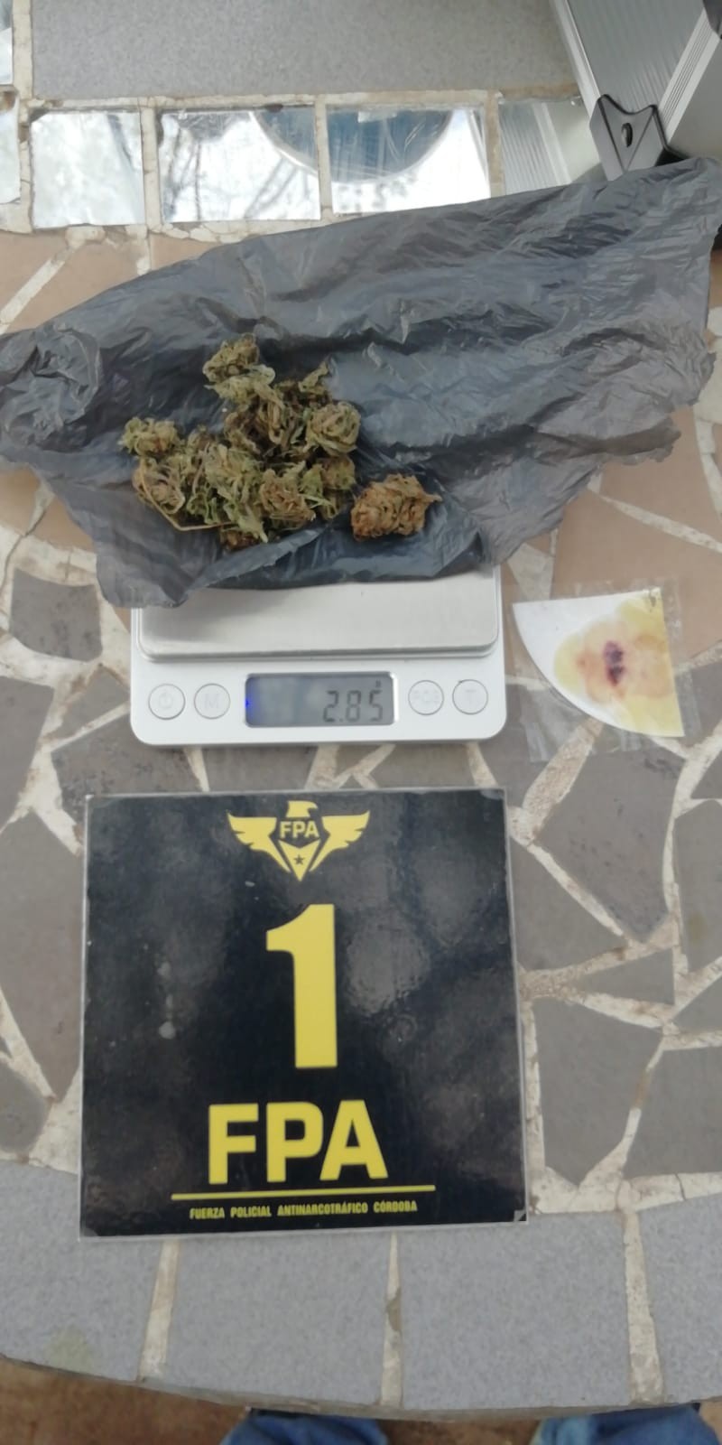 En el mismo domicilio se constató y se procedió al secuestro de estupefacientes. 285 gs. de cogollos de marihuana. Por tal motivo se dio participación a la FPA (Fuerza Policial Antinarcotráfico) y se procedió a la aprehensión del sujeto.