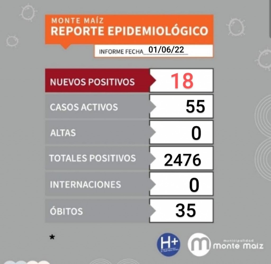 El reporte epidemiológico local confirmó 18 casos nuevos de COVID-19 en Monte Maíz. No se han dado altas médicas nuevas.