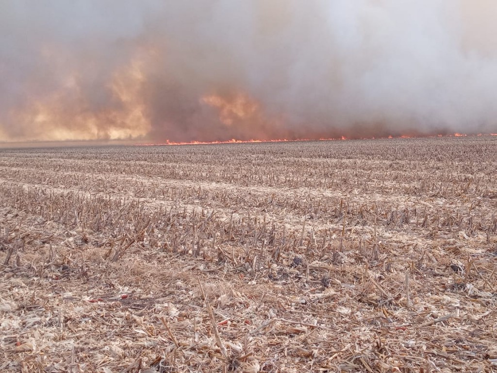 Al arribar al lugar se encontraron con un incendio de rastrojos y de maíz en planta. Se movilizaron dos unidades de la Fuerza con un total de 5 efectivos.