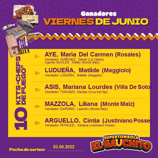 GANADORES DE LOS SORTEOS SEMANALES DEL GAUCHITO
