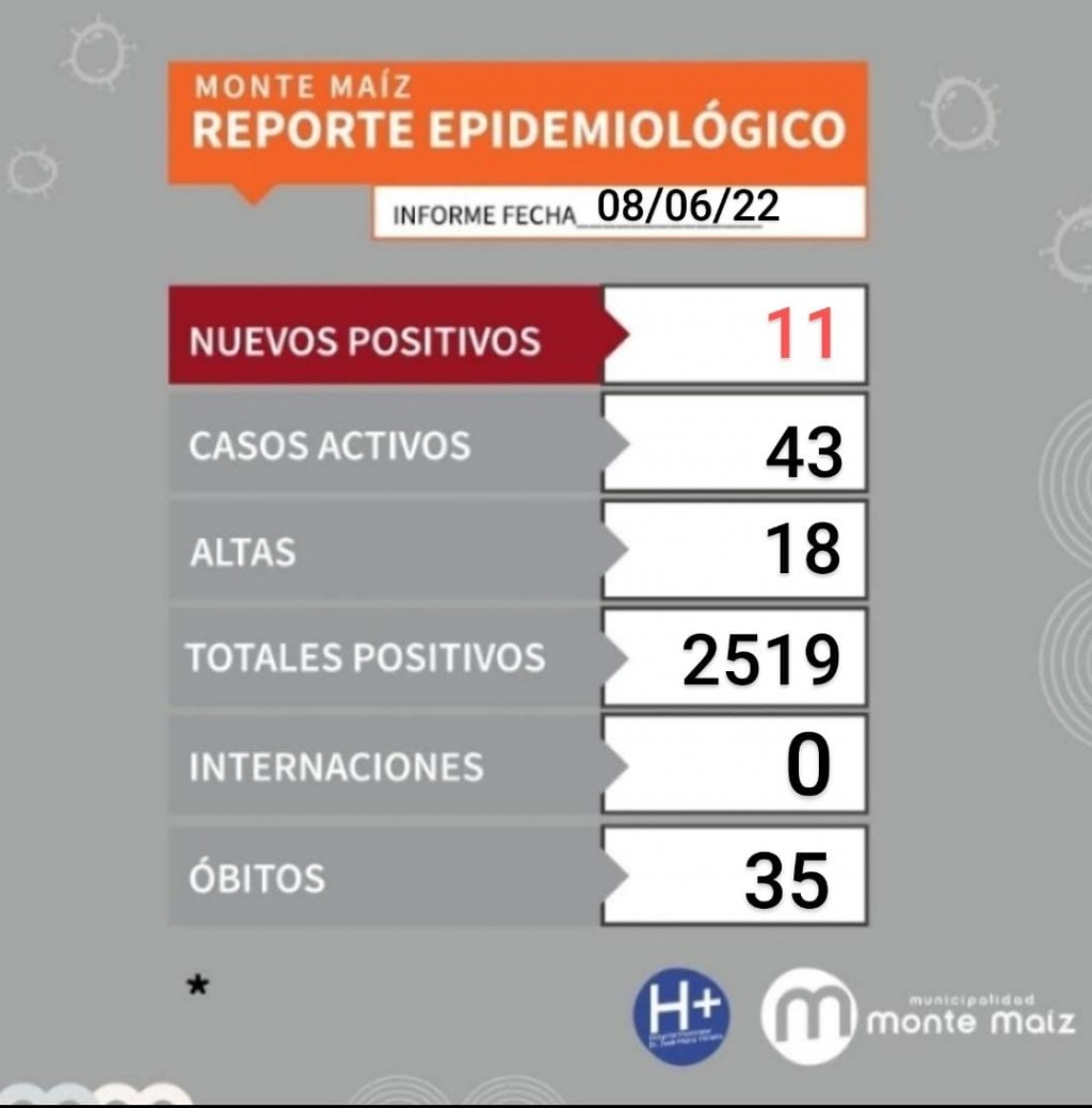 11 CASOS NUEVOS DE COVID-19 EN MONTE MAÍZ
