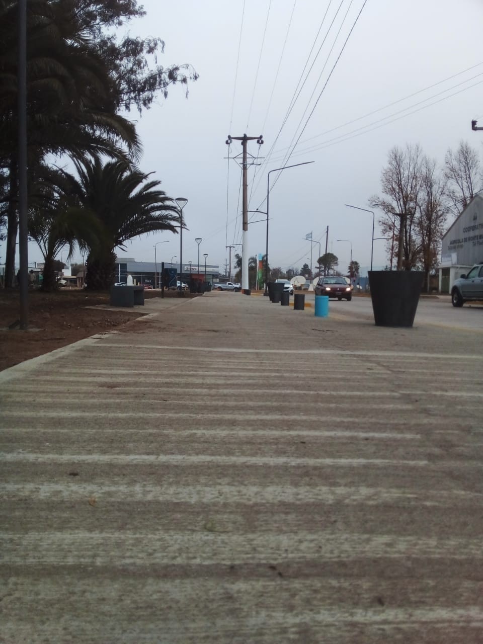 Las veredas nuevas ya están terminadas, en ambas manos de la calle Chubut, en donde también se colocaron cestos de basura y bancos de descanso (solo del lado este de la calle). Solo restan detalles menores. En las próximas horas se dejará limpio y prolijo todo el sector.