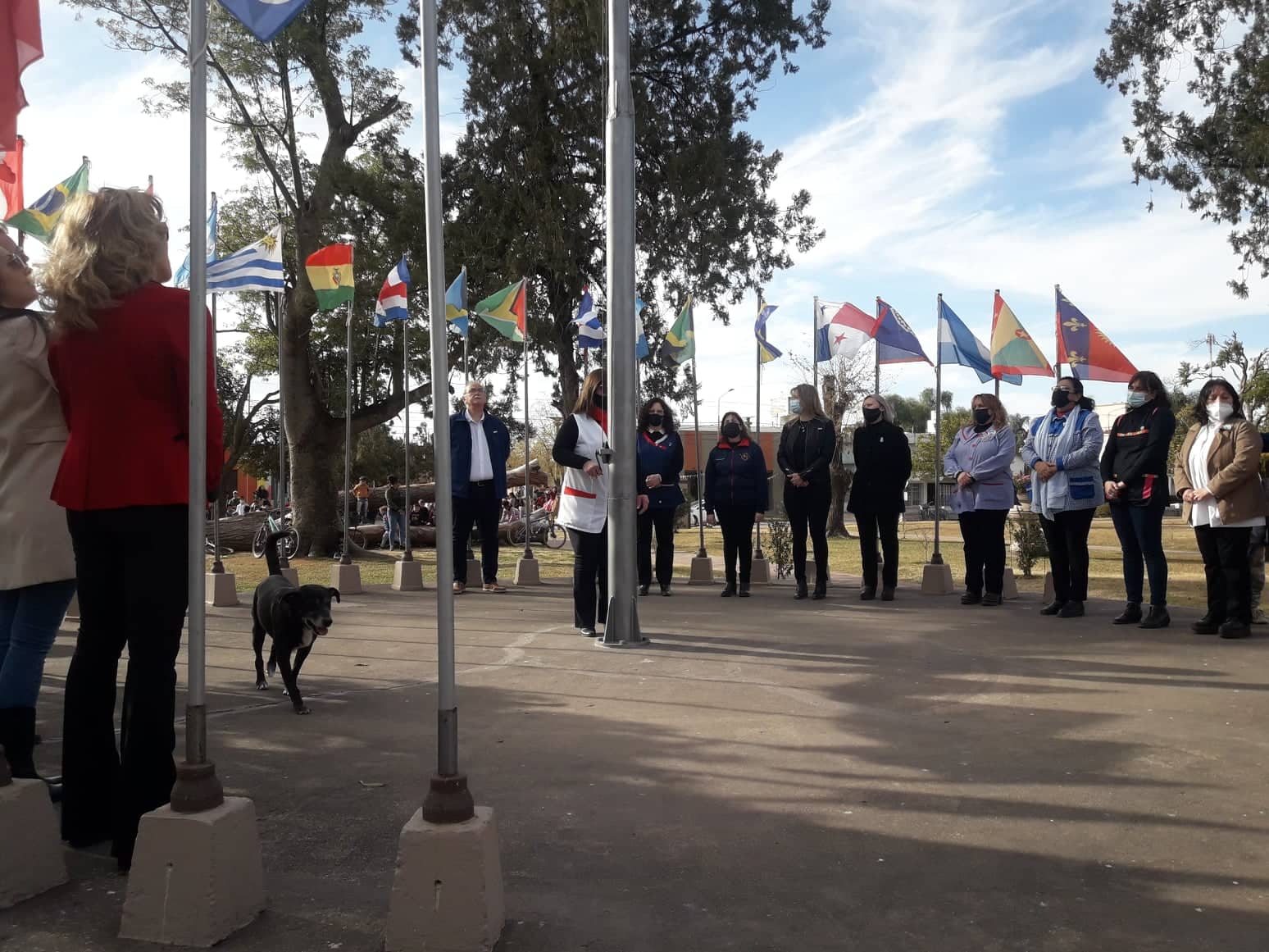 El Intendente Municipal, Dr. Luis María Trotte; funcionarios municipales, el pastor Jorge Vargas y directoras de las escuelas izaron la bandera en el mástil de la plaza. Luegodepositaron una ofrenda floral en la imagen del prócer Manuel Belgrano.