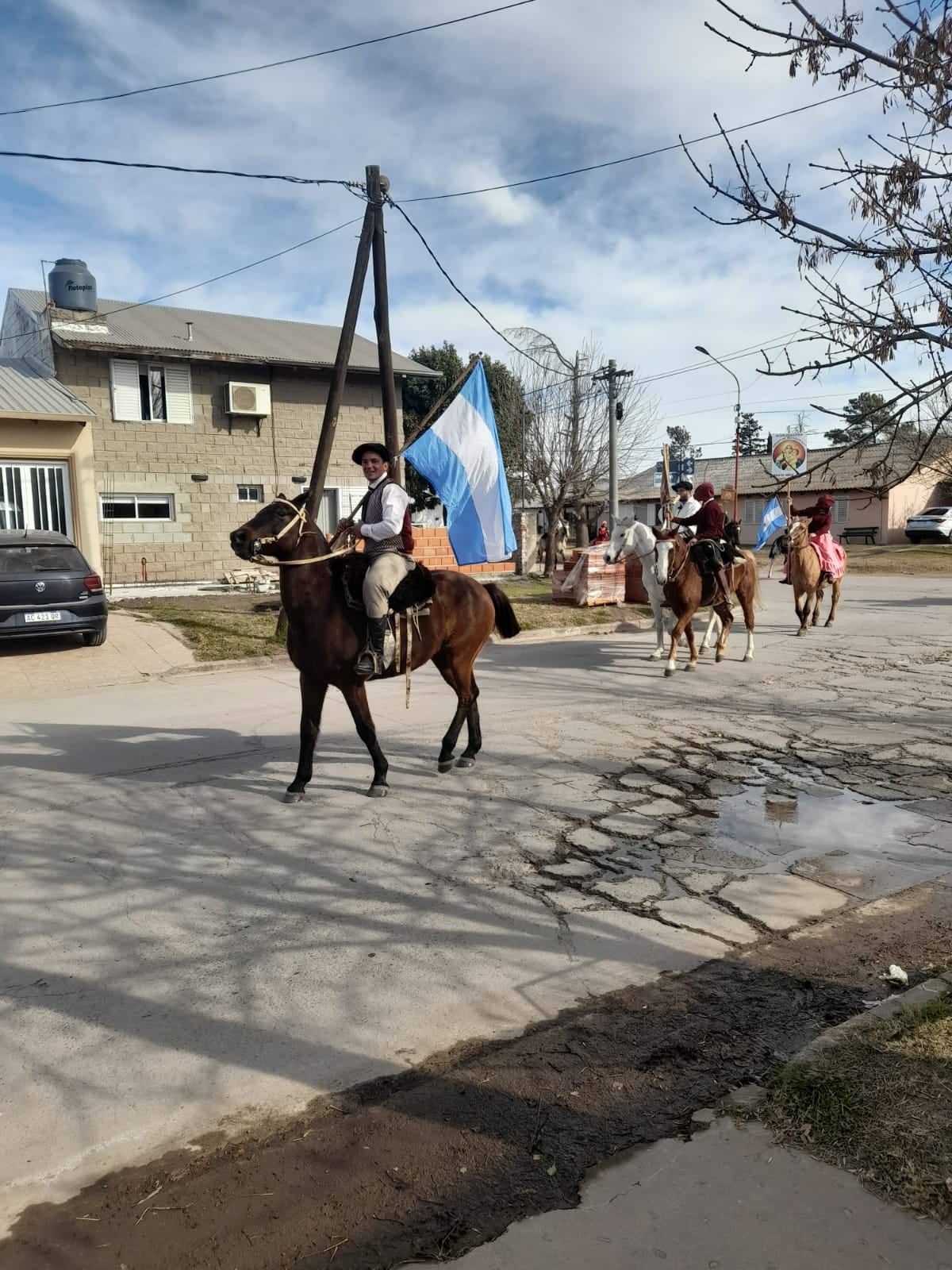 En el final, los alumnos del Divino Niño Jesús hicieron una representación artística con la canción “Salve Argentina” en homenaje a tan emotiva celebración. Previo al acto principal, agrupaciones gauchas desfilaron a caballo por las calles del pueblo para finalizar su recorrido en la plaza.
