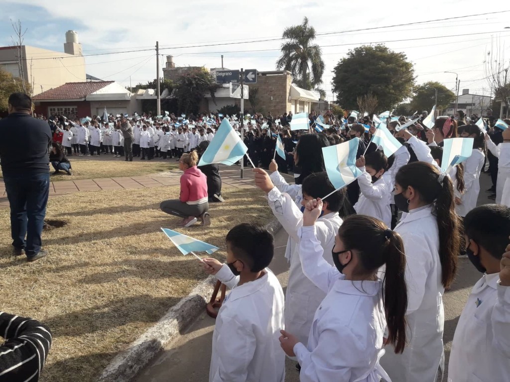La Inspectora de zona de escuelas primarias, Prof. Mirian Maggi, fue quien guió a los alumnos a prometer la bandera en medio de un emotivo marco de autoridades y familiares de los alumnos. En esta oportunidad fueron tres cursos ya que durante los dos años de pandemia no se llevó a cabo tan solemne acto.