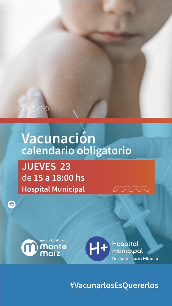 Este jueves 23 de junio, de 15 a 18 hs. se vacunará por el Calendario obligatorio en el Hospital Municipal.