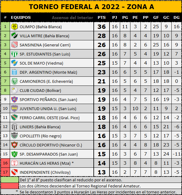 En el marco de la fecha 17 del Torneo Federal A, Argentino de Monte Maíz cayó 1 a 0 frente a Olimpo de Bahía Blanca. La única emoción de la tarde en el estadio Modesto Marrone llegó a los 11 minutos de la etapa inicial a través del tanto de Martín Ferreyra.