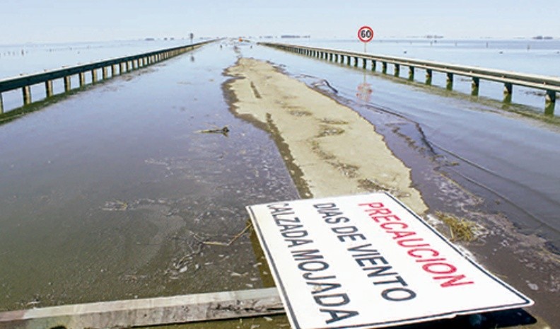 Desde hace más de un año está interrumpido el tránsito por ruta 7 a la altura de este espejo de agua. La situación obliga a los viajeros a desviar por ruta 8, a la altura de Rufino. A partir de allí quienes viajan a San Luis o Mendoza transitan por Río Cuarto y retoman la ruta 7 a la altura de Mackenna, rumbo a las provincias antes mencionadas.