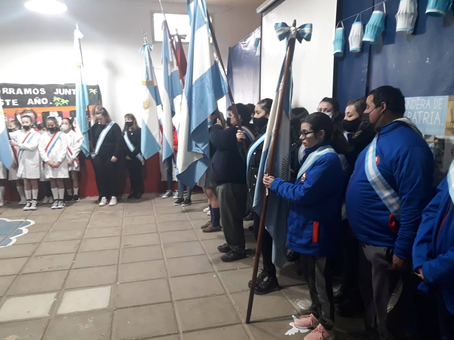 La Directora de la escuela, Ivana Bulgarelli, junto al Secretario de Gobierno, Ignacio Silva, izaron la bandera en el mástil del patio del colegio. Se entonaron las estrofas del Himno Nacional Argentino y las palabras alusivas a la fecha estuvieron a cargo de Ignacio Silva.