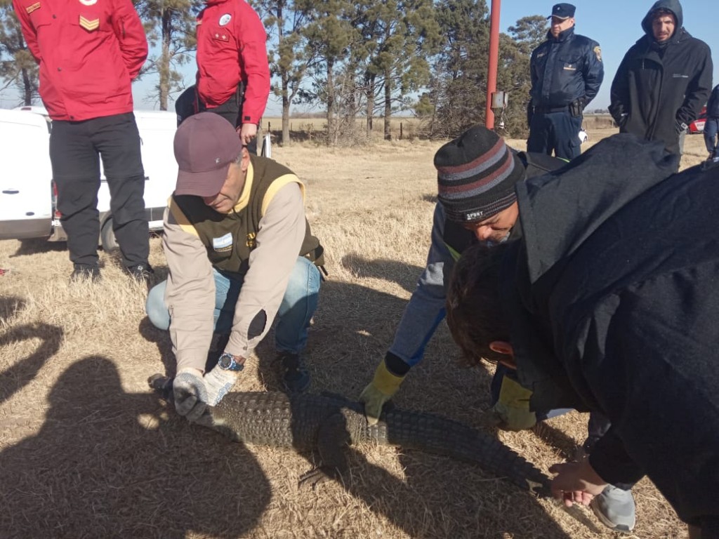En la mañana del miércoles y con la actuación de personal de la policía ambiental de la provincia de Córdoba, biólogos y veterinarios de la reserva ecológica Tatú Carreta, se logró rescatar un ejemplar de yacaré que habitaba en uno de los piletones de deshechos cloacales de General Baldissera.