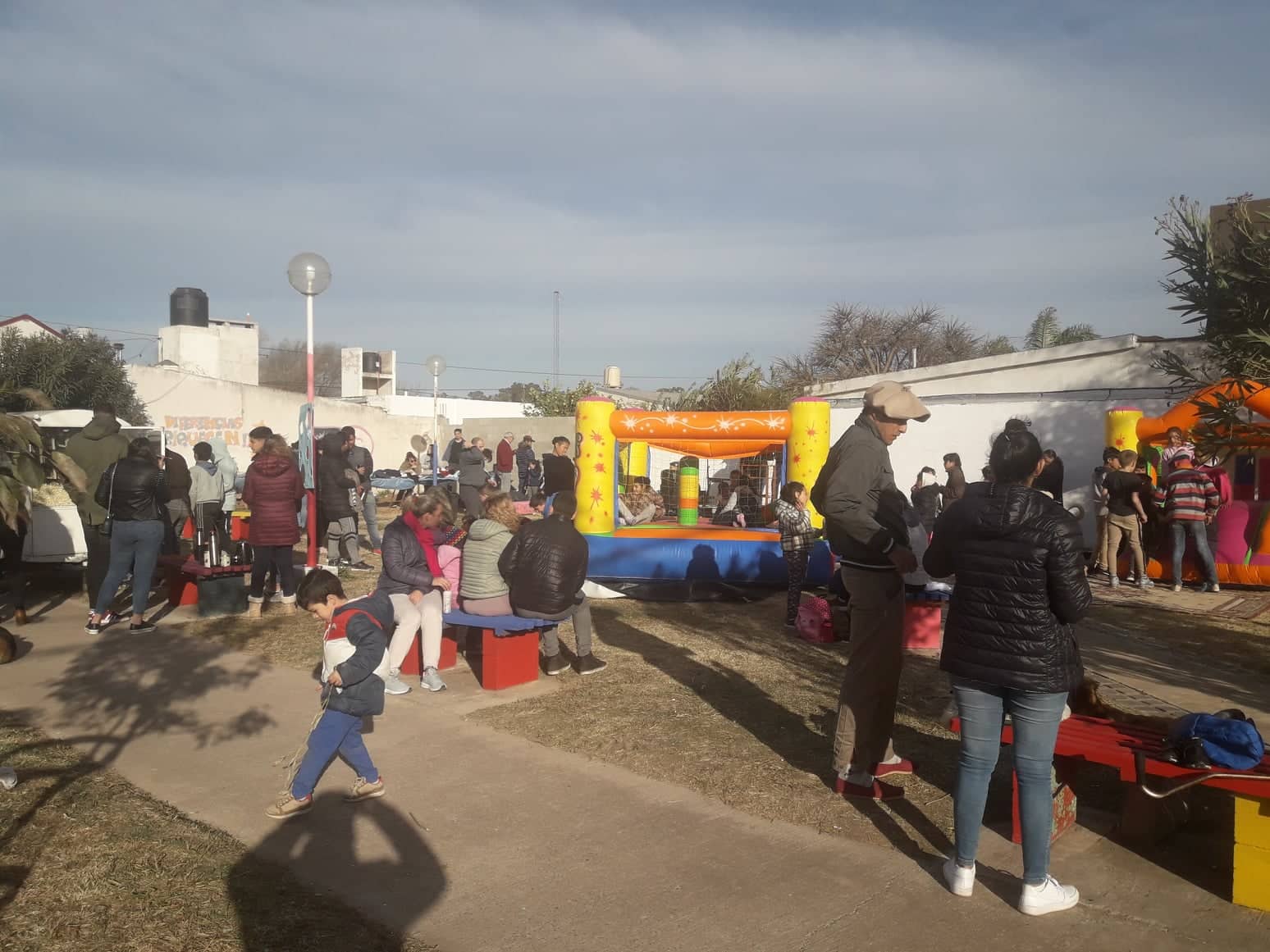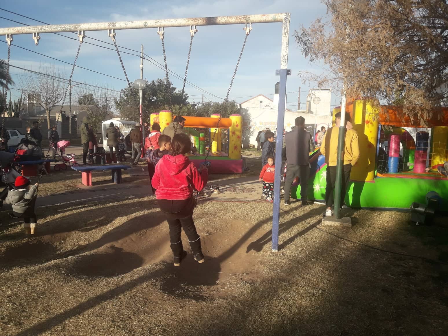 Los niños pudieron jugar en los castillos inflables y se divirtieron con actividades recreativas y artísticas. Hubo una merienda con copa de leche, jugo, facturas y pochoclos totalmente gratis. Las familias llegaron con reposeras y el mate para acompañar a los más chiquitos.