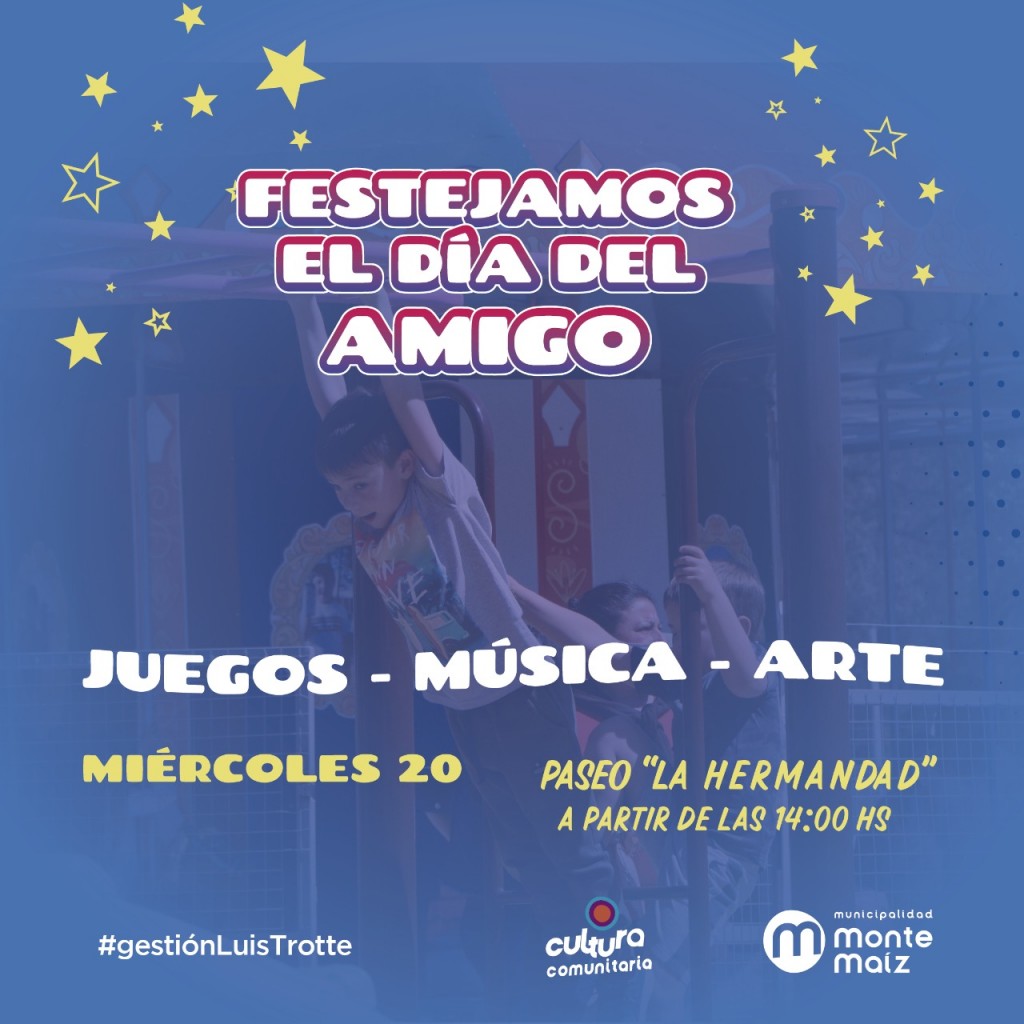 Mañana miércoles 20 de julio se celebra el Día del Amigo en el Paseo de la Hermandad desde las 14 hs. Iniciativa del Departamento de Cultura Municipal.