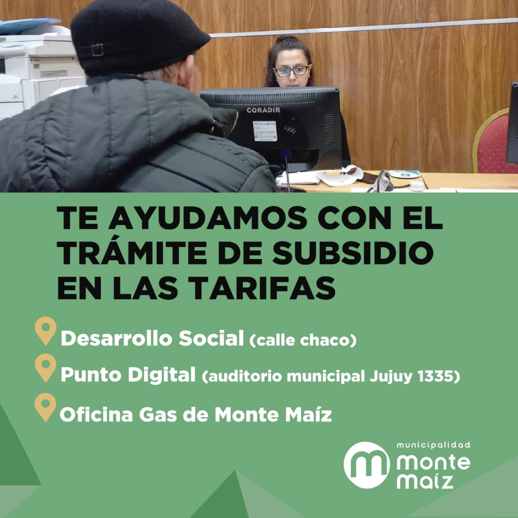 La Municipalidad de Monte Maíz puso a disposición de los vecinos de nuestra localidad tres dependencias para ayudar en el trámite de subsidios en las tarifas.