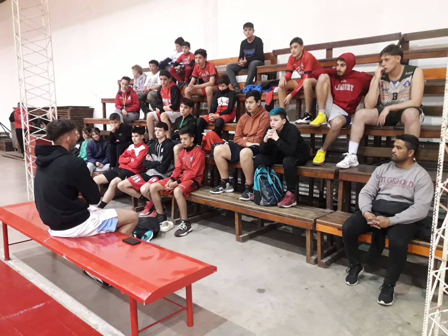 Mantuvo una charla con los deportistas del Rojo quienes atentamente escucharon sus vivencias y sugerencias para la carrera de un deportista. Contó desde sus orígenes, su paso por Atenas de Córdoba y la convocatoria para el seleccionado juvenil.