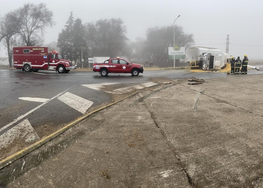 El transporte circulaba cargado, chasis y acoplado, con sentido de marcha de Bell Ville hacia Justiniano Posse. Afortunadamente el conductor había podido salir del vehículo por sus propios medios y no presentaba lesiones de consideración.