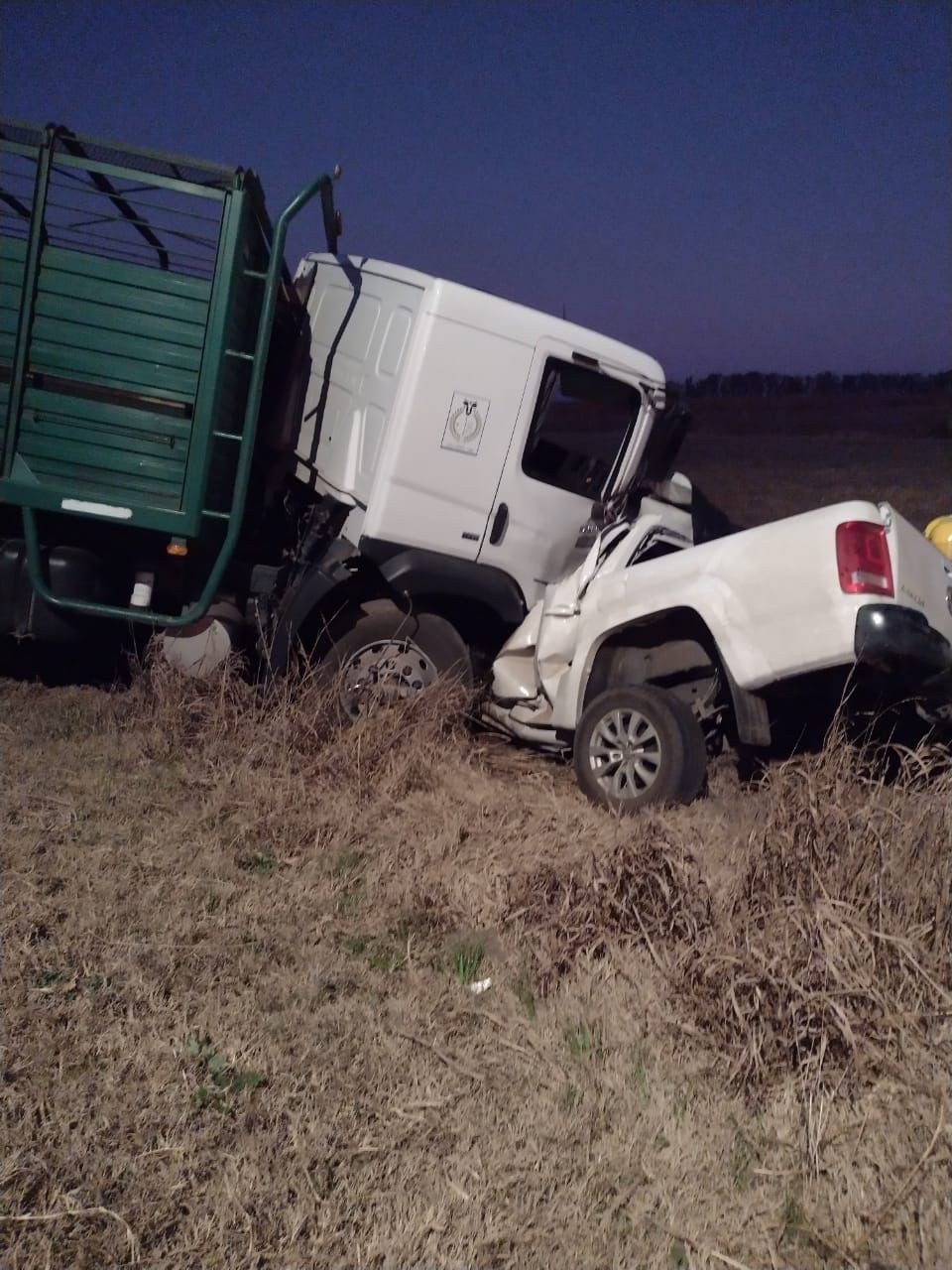Siendo las 06.30 hs. Se tomó conocimiento que se habría producido un accidente de tránsito en ruta provincial N° 3, km 231 entre las localidades de J. Posse y W. Escalante, entre un camión jaula marca Vw, color blanco, con chasis y acoplado, sin carga, conducido por el Sr. RAMIREZ , mayor de edad, acompañado por su hijo AGUSTIN, también mayor de edad, ambos domiciliados en la localidad de los Cisnes. El transporte circulaban de Sur a Norte y por causas que se tratan de establecer colisionó de frente con una camioneta marca Amarok, color blanca, observando dentro del rodado menor dos personas de sexo masculinos (mayores de edad domiciliados en Laborde) los que se encontrarían sin signos vitales, se da conocimiento a Fiscalía de Instrucción de la ciudad de Bell Ville. Desde allí se ordenó que se preserve el lugar hasta el arribo de policía judicial.