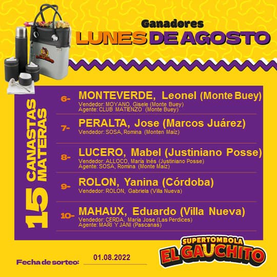 Arrancamos Agosto celebrando a nuestra Madre Tierra con muchos Mates y Ganadores.