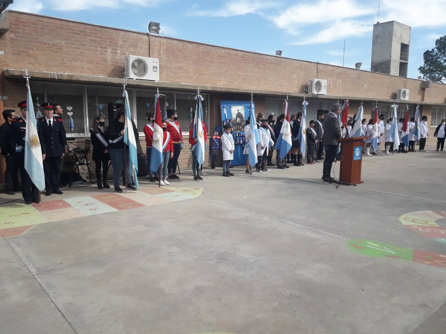 Se escuchó un audio alusivo a una etapa de la vida de San Martín, producido por alumnos del Instituto Superior del Profesorado; seguidamente, alumnos de 1° Grado B de la institución anfitriona, hicieron una representación con la canción “Caballito Blanco”.