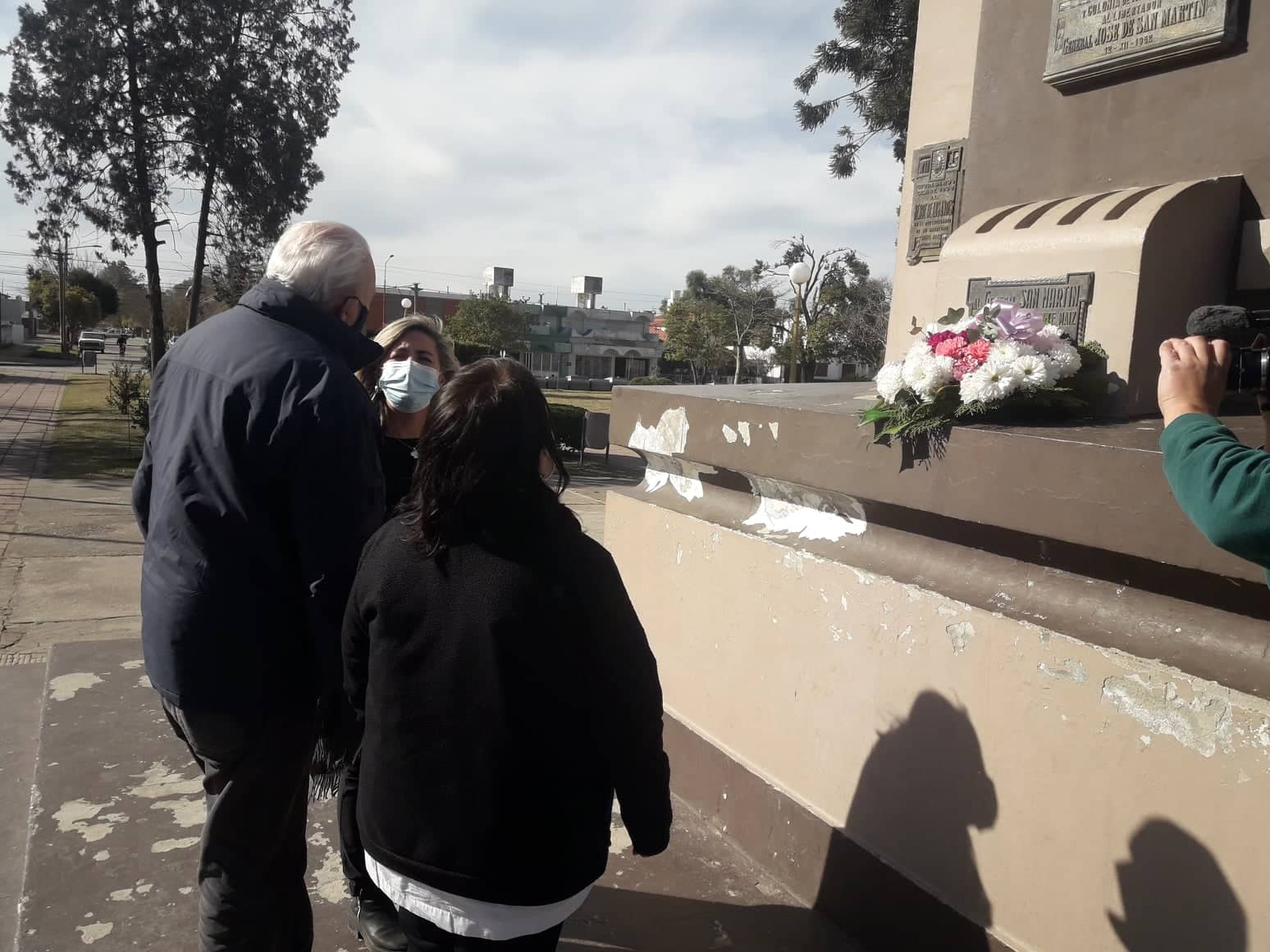 Luego, el Intendente y demás autoridades se dirigieron a la plaza en donde, junto a la Directora de la escuela anfitriona, se depositó una ofrenda floral en el monumento al Libertador de América.