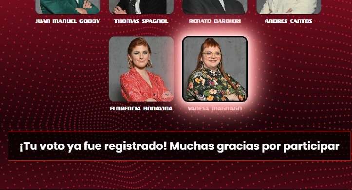 La votación se hace a través de https://lavoz.mitelefe.com/. Esta noche, en horario del Programa, de 22:30 hs. en adelante, se sabrá si Vane pasa a los shows en vivo o no.