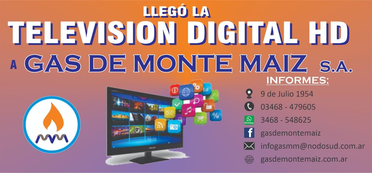 Desde el próximo 1° de setiembre se pone en marcha la televisión de Gas de Monte Maíz S.A. cuyo abono básico cuenta con más de 100 señales en HD y programación local a cargo de Waldi Producciones.