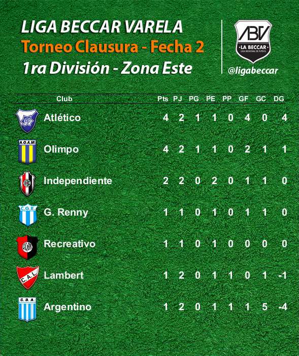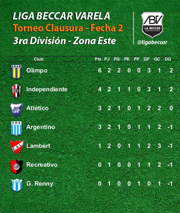 Por la 2da fecha de la zona Este del torneo Clausura, se registraron triunfos de Olimpo, Independiente y Atlético. En la zona Oeste, ganaron Jorge Newbery, Sportivo Chazón, Sportivo Rural y Sarmiento de Etruria.
