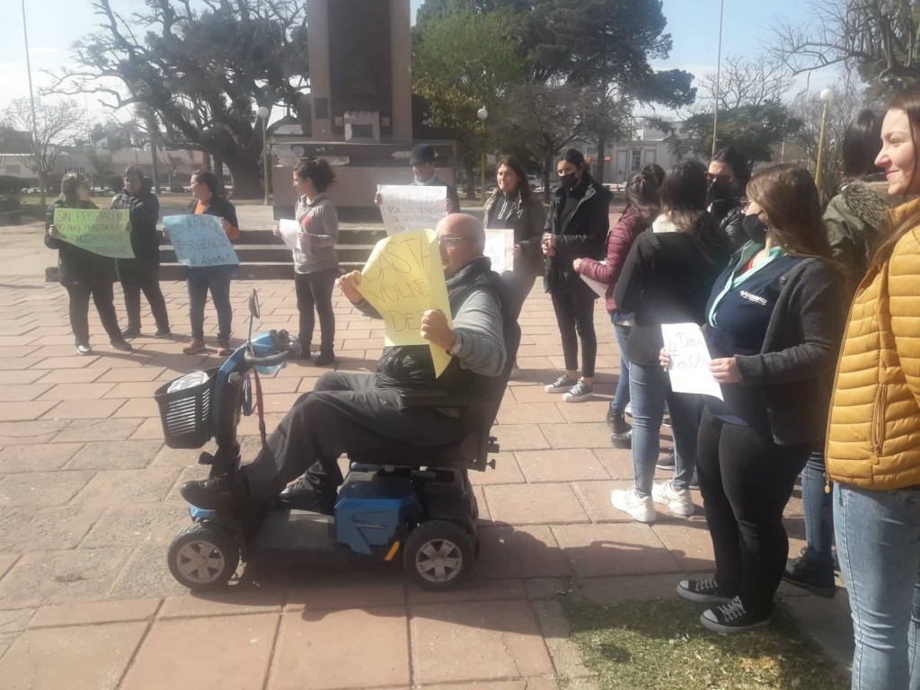 Personal de salud y educación en discapacidad se sumaron al reclamo nacional por el atraso en el pago de las obras sociales de los tratamientos. En Monte Maíz adhirieron al paro de los días 29, 30 y 31 de agosto, y se congregaron en la plaza del pueblo acompañados de familias que necesitan la continuidad de los tratamientos con cobertura.