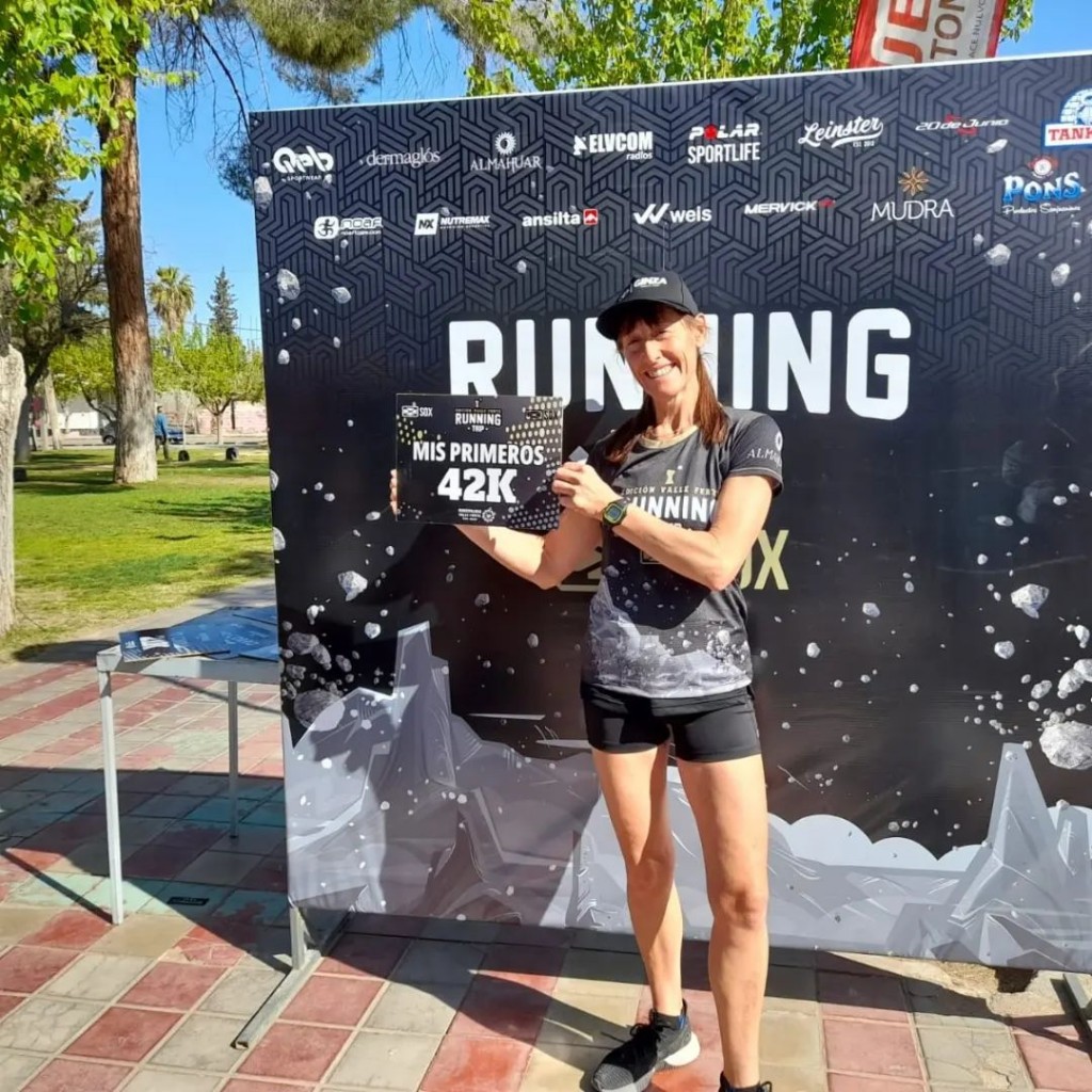 “Feliz de llegar entera 42 km trail muy buena carrera para pablo q me aguanta jaaa y luca q lo amo mucho y agradecer a mis amigas corredoras q me alientan y me dicen todo lo q tengo que hacer las quiero .andre .susy.m ines.ramo.y ale 1 km más”.