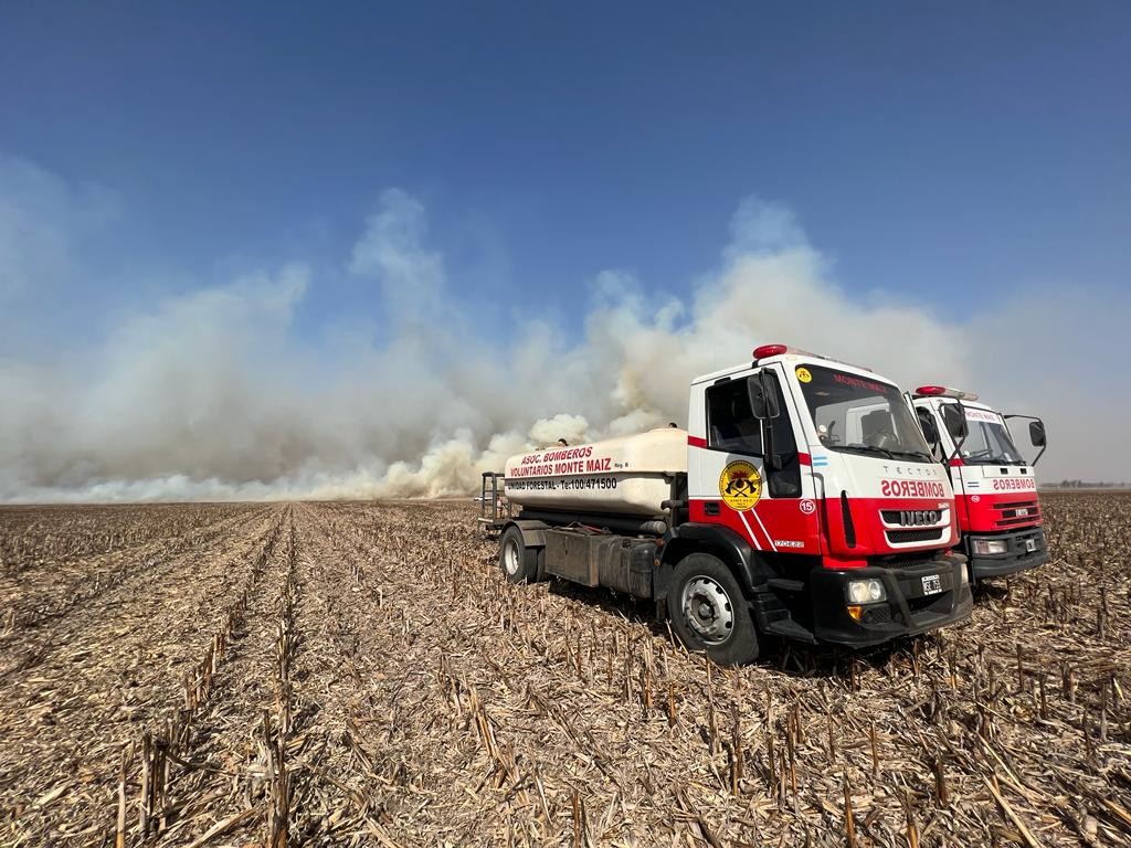En horas de la siesta de este miércoles, Bomberos Voluntarios de Monte Maíz, fueron convocados a zona rural, sobre ruta provincial N° 3, establecimientos rurales de productores Trossero y Bergia, por un incendio de rastrojos. El mismo se propagó rápidamente por la acción del fuerte viento. Bomberos trabajaron más de una hora y media en el sector.