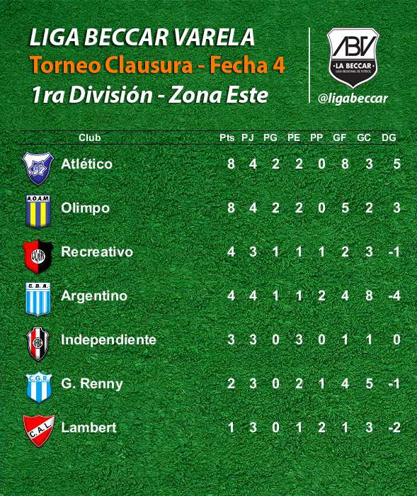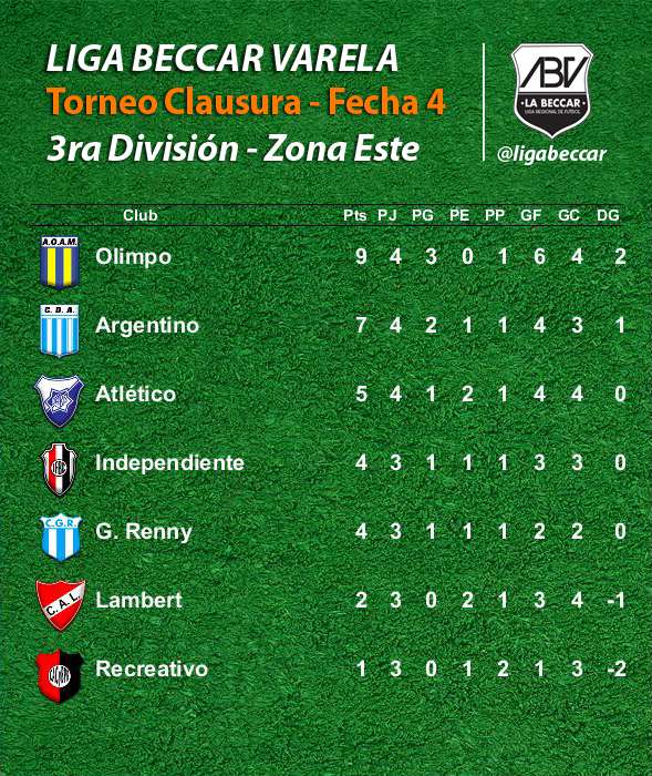 Argentino se quedó con el invicto del líder Olimpo por la 4ta fecha del torneo Clausura, en la zona Este, donde además ganó Guillermo Renny. Sportivo Chazón y Jorge Newbery son los nuevos punteros en la zona Oeste.