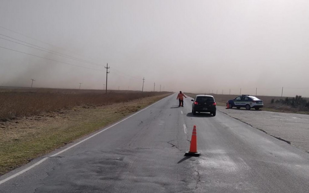 Personal de Bomberos de Isla Verde convocaron a la policía Caminera por la razón anteriormente mencionada. De inmediato se instaló una parada preventiva para realizar reducción de velocidad aunque la ruta no está cortada. Por estas horas el cielo está despejado pero con viento sur. El mismo levanta mucho polvo que dificulta y limita la visibilidad. Se recomienda circular con precaución por el sector.