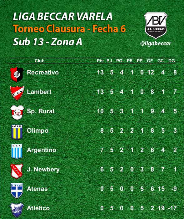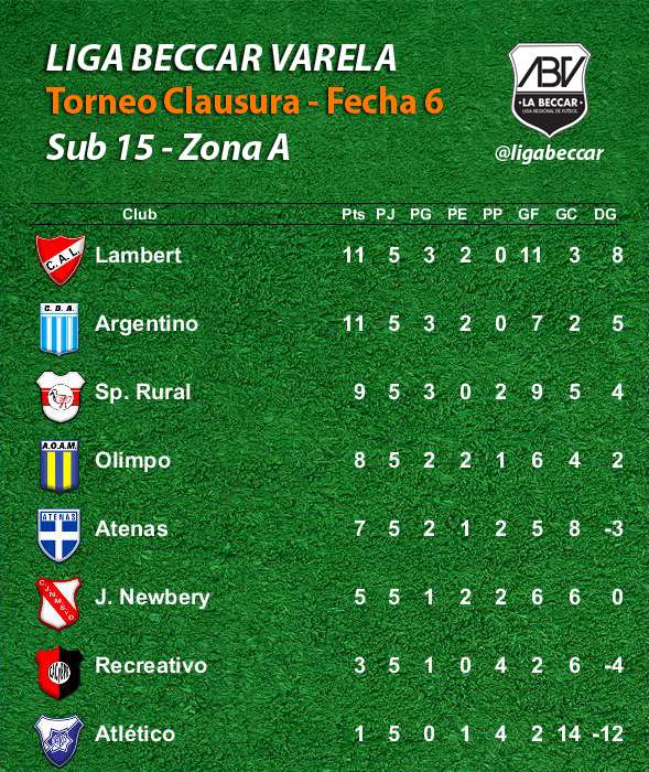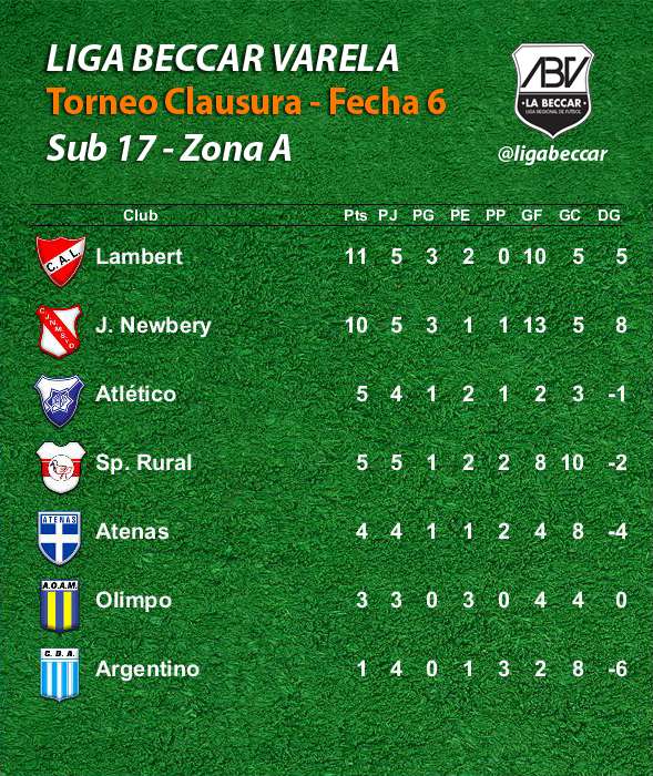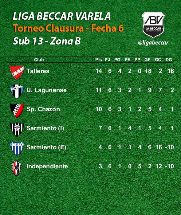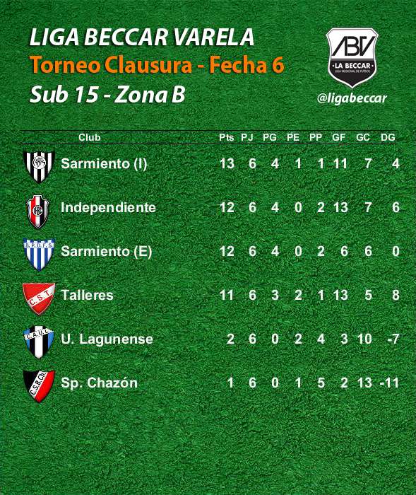 Se jugó en la tarde del sábado 17 de septiembre la 6ta fecha de los torneos Clausura Sub 17 “Alexis Germán Cabrera”, Sub 15 “Alejandro Ariel Navarro” y Sub 13 “Omar Tuti Andrada”, de la Liga Beccar Varela de fútbol.