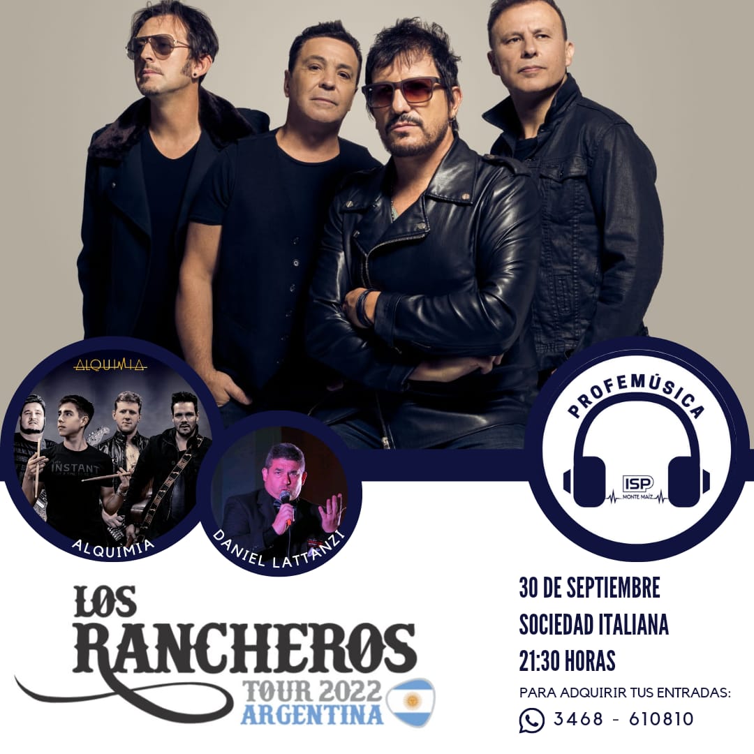 En el marco de las actividades que realiza el Instituto Superior del Profesorado de Monte Maíz de cara a sus 50 años de vida, el próximo viernes 30 de setiembre a las 21:30 hs. se presentarán en nuestra localidad “Los Rancheros”. El espectáculo se hará en el salón de eventos de la Asociación Italiana.