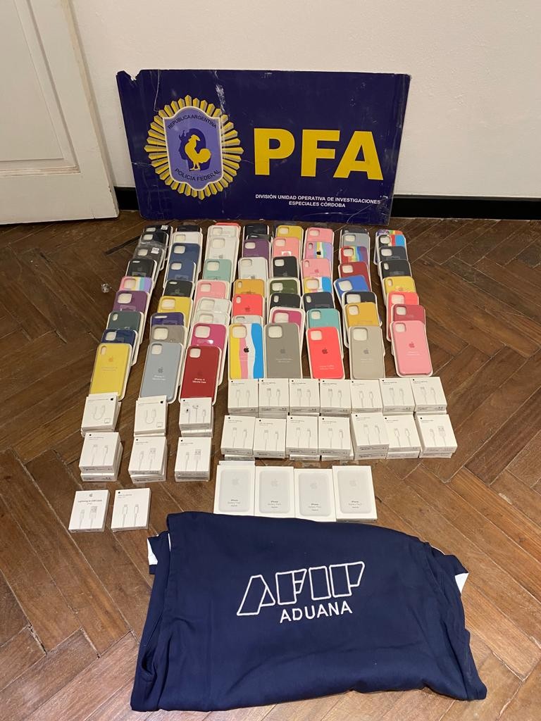 A raíz de ello y con el total de las pruebas obtenidas, el Juzgado Federal N° 3 de Córdoba a cargo del Dr. Miguel Hugo Vaca Narvaja, Secretaria de la Dra. Mariana Buteler De Barros ordenó seis allanamientos donde se secuestraron 13 teléfonos celulares, 60 relojes digitales de distintas marcas importadas, una caja fuerte, una contadora de billetes, una cámara domo, dos pendrive, tres (03) tarjetas de memoria, 67 fundas de teléfonos, 34 cables conectores, dos auriculares, 5 cable adaptador dos base de cargador, 27 macbook marca Apple, 3 ipad, 404 cargadores de celular, 700.000 pesos argentinos y 200 dólares estadounidenses