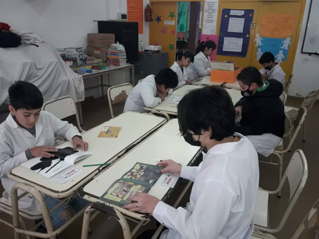 Durante la mañana se leyeron innumerables libros en la escuela y todos son de la Biblioteca de la institución. Bibliografía muy rica que se vio beneficiada por los libros que mandó también el Ministerio de Educación de la Nación en los primeros meses del año.