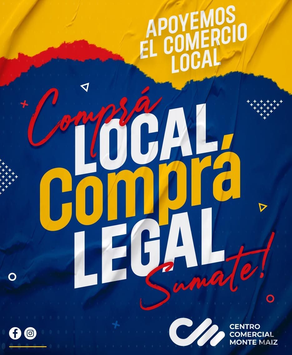 El Centro Comercial de Monte Maíz pone en marcha la Campaña " COMPRA LOCAL - COMPRA LEGAL", cuyo objetivo es minimizar el impacto que producen las compras online y las compras que se llevan a cabo fuera de nuestra localidad en la economía de nuestro ecosistema comercial local, esta compaña lo que busca es concientizar a nuestros consumidores sobre la importancia de apoyar a nuestras empresas, industrias y comercios locales legales mediante la adquisición de los productos y servicios ofrecidos por ellos, fuentes importantes generadoras de ingreso y empleo para nuestra localidad.