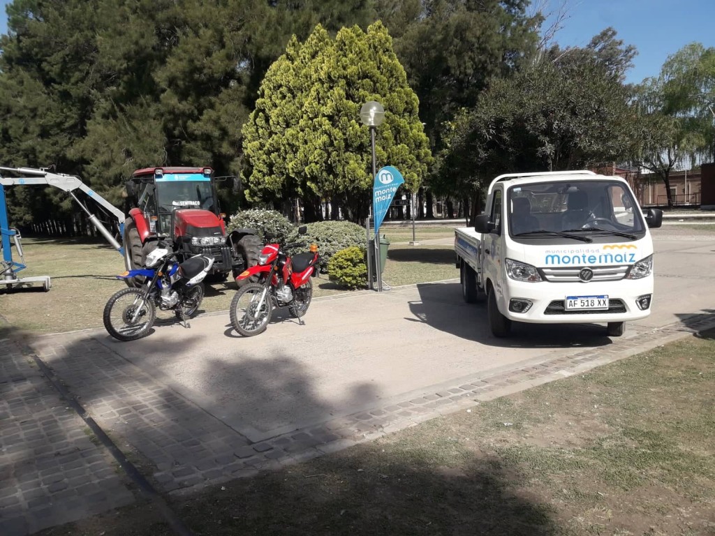 En el marco de la entrega de herramientas, maquinarias y materiales para vecinos de Monte Maíz, emprendedores, trabajadores y familias dedicados a distintas tareas; se expuso en el Paseo de la Hermandad la nueva flota de vehículos y maquinarias de la Municipalidad, fruto de las gestiones del Dr. Luis María Trotte, desde diciembre de 2019 a la fecha.
