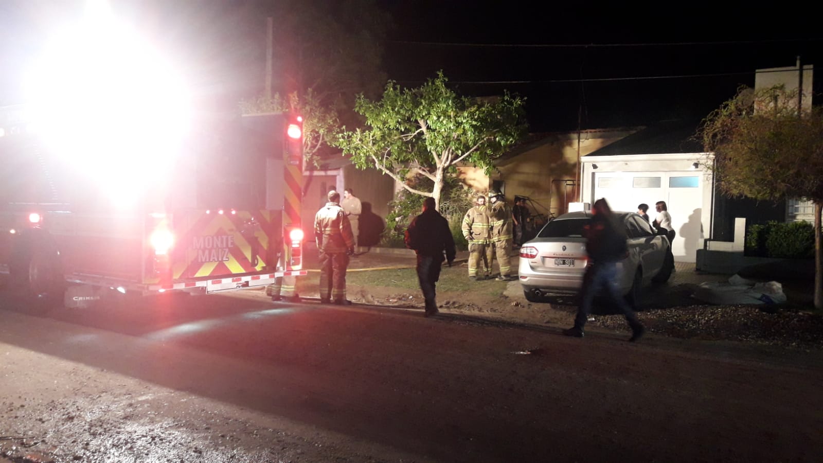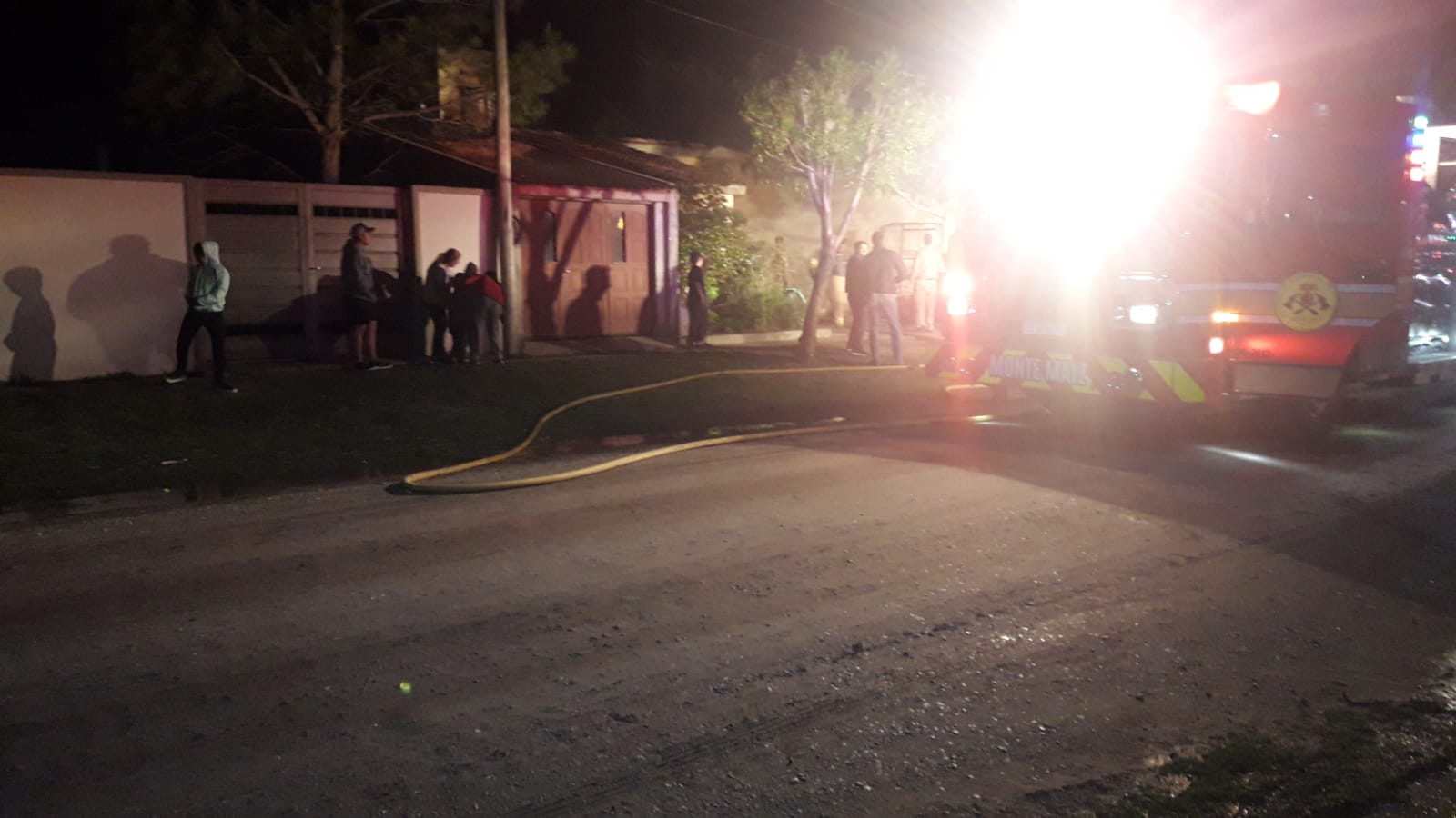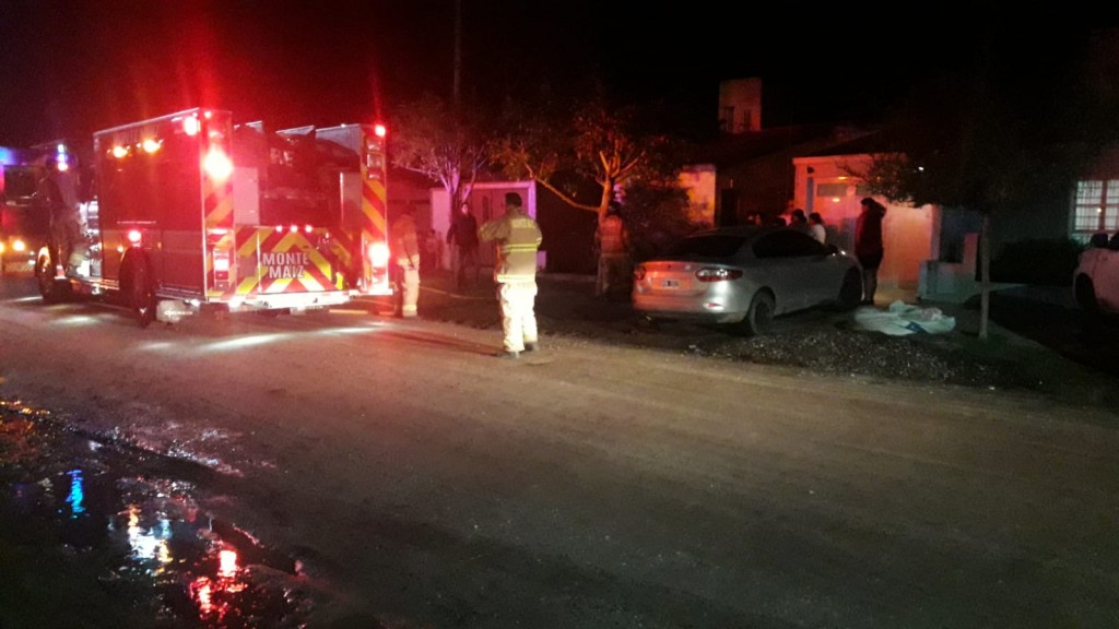 A las 20:35 hs. de este miércoles Bomberos Voluntario de Monte Maíz fueron convocados a calle Las Malvinas al 1900 frente al Centro de Desarrollo Infantil “Huellitas” por un incendio en una vivienda de la familia Yonas.