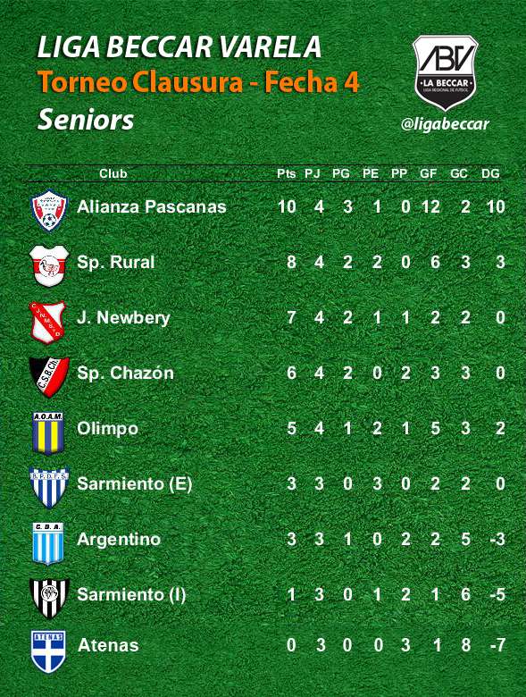 Alianza Pascanas lidera el Torneo Clausura “Román Pedro Berardi” con su victoria sobre Atenas. Sportivo Chazón superó a Argentino, Olimpo con Sportivo Rural y Sarmiento (E) ante Jorge Newbery terminaron igualados.