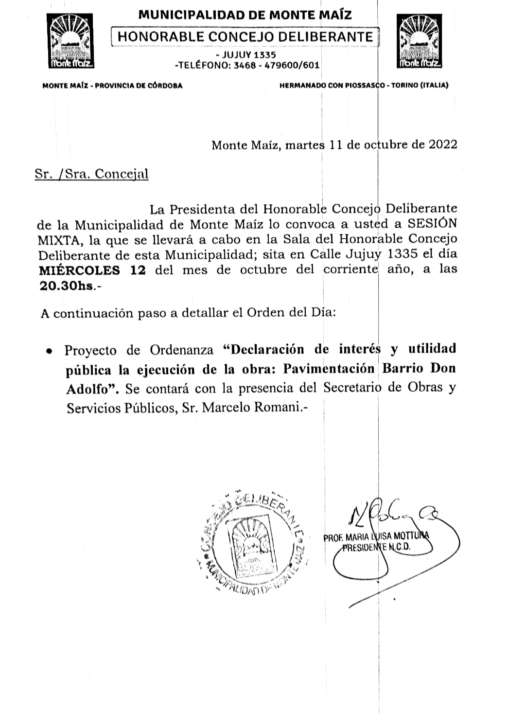 EN EL HONORABLE CONCEJO DELIBERANTE DE MONTE MAÍZ