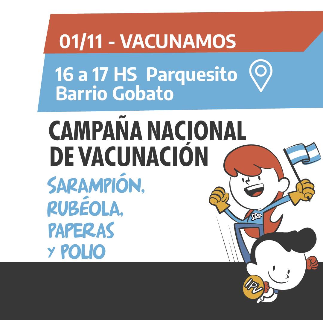 En esta oportunidad, se vacunará este 1° de noviembre en el parquecito de barrio Barracas de 16 a 17 hs.. Y de 17 a 18 hs. se vacunará en B° Evita.