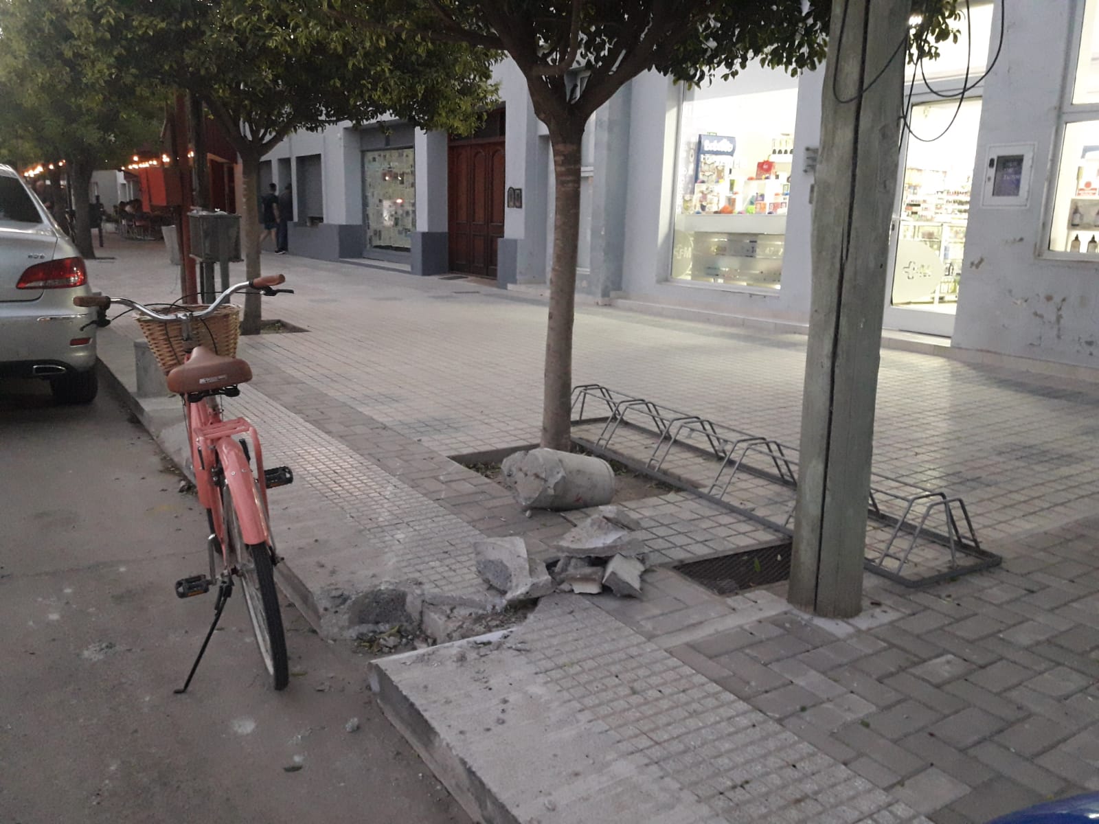 En la misma cuadra, del lado opuesto, frente a la farmacia Manochio, un automovilista habría perdido el control del rodado, impactando con uno de los bolardos de adorno de las nuevas veredas, arrancándolo de cuajo. También se trata de un autor/a ignorado/a por el momento.