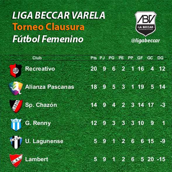 Recreativo lidera el Torneo Clausura “María Remedios del Valle” tras su victoria ante Unión Lagunense. El escolta Alianza Pascanas venció al anfitrión Guillermo Renny. Sportivo Chazón goleó a Lambert y se ubica tercero.
