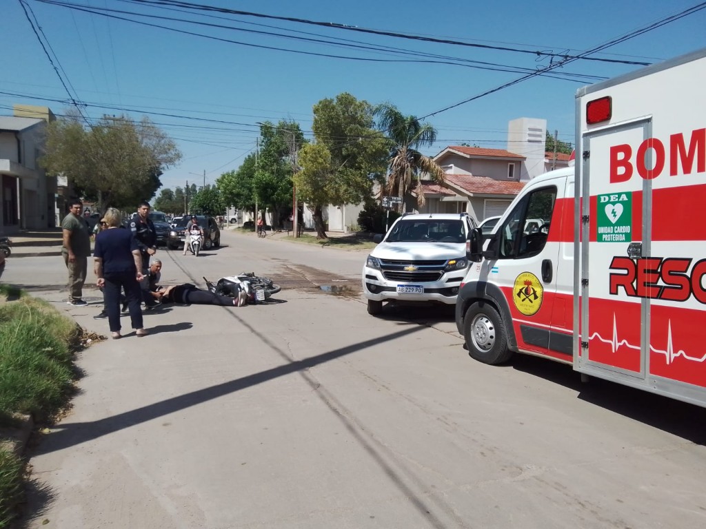 Por causas que se tratan de establecer, colisionaron en la mencionada intersección. La motocicleta era guiada por Claudia de Petruzzi y la chata por Carlos Ritta. Ambos debieron ser trasladados al Hospital Municipal. La mujer por la ambulancia de Bomberos y el masculino por Re Emergencias.