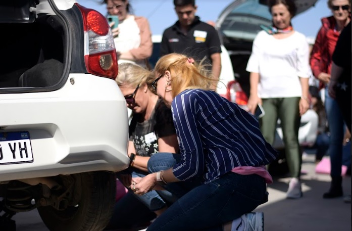Presentando a Pirelli, la nueva marca de Agrocomercial Garcia, se realizó una demostración de cambio de neumáticos en la que las mujeres se animaron a realizarlo ellas mismas.