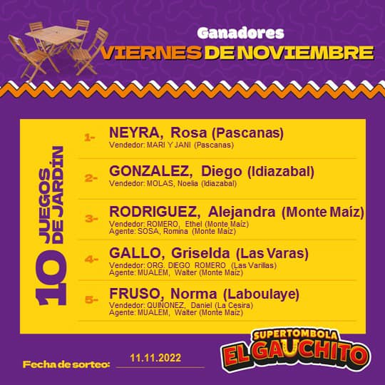 SORTEOS DE LOS VIERNES DE NOVIEMBRE